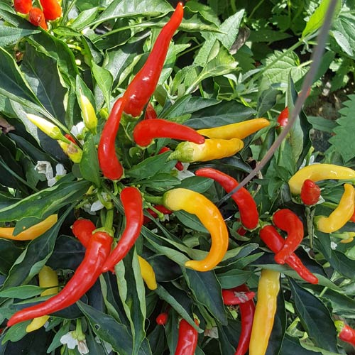 Info: Die Naschzipfel Rot - Medusa Chili ist ist der milde Verwandte des Feuerküsschens. Die Pflanzen bleiben sehr klein uns sind daher gut für die Topfkultur auf Balkon und Fensterbank geeignet. Die ca. 1 x 4 cm langen Chilis wachsen aufrecht und bieten ein schönes Farbspiel beim Reifen: von grün über gelb nach rot. Sie haben ein gutes Paprikaaroma und eignen sich zum frischen Verzehr direkt vom Strauch, für den Salat, aber auch zum Trocknen und Einlegen.
