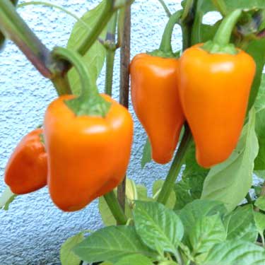 Info: Diese orangefarbenen Zwerge ("dwarf" engl. für "Zwerg") sind eine hübsche und sehr leckere Züchtung aus den Niederlanden. Die ca. 70 cm großen Pflanzen entwickeln eine Vielzahl der wohlschmeckenden, fast süßen Früchte. Sie eignen sich zum frischen Verzehr (besonders Kinder lieben sie), als Farbtupfer in Salaten, zum Kochen und zum Füllen. Einer unserer persönlichen Favoriten.
