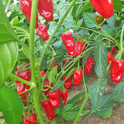 Info: Die Hinklehatz Red Chili hat ihre Wurzeln im Amish County in Pennsylvania und ihr Name stammt aus deren Sprache, die ans Deutsche und Schweizerische angelehnt ist: es bedeutet "Hühnerherz". Und tatsächlich, ihre Form ähnelt der eines Hühnerherzens, ca. 3-4 cm lang und konisch geformt. Sie hat eine intensive Schärfe ähnlich der Cayenne und wird traditionell in Essig eingelegt. Sie eignen sich auch für Hot Saucen, zum Kochen, Füllen und Grillen.