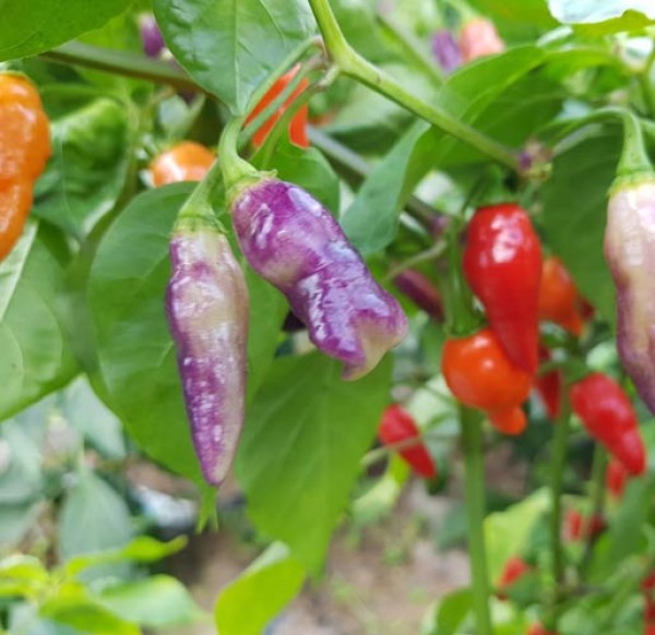 Info: Die Condors Beak Chili aus Peru, deren Name von der Schnabelform des Condors abgeleitet ist. Die ca. 80 großen, buschigen Pflanzen tragen sehr viele der sehr scharfen und hocharomatischen Früchte. Diese zeigen beim Reifen ein schönes Farbenspiel am Strauch: von grün über violett und pastellgelb nach orange und tiefrot. Sie eignen sich zum Kochen, Trocknen und zum Einlegen (bei Verwendung der unterschiedlichen Reifegrade gibt das auch ein hübsches Geschenk für Chilifans).